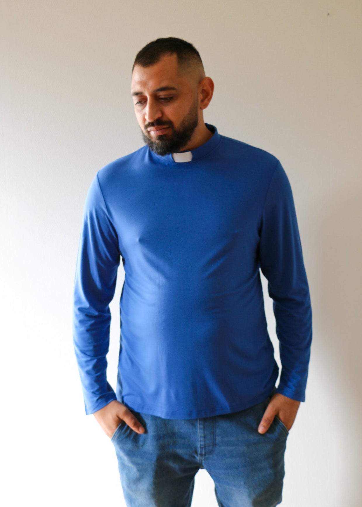 PREST: langermet t-skjorte med snipp herre med glidelås i nakken